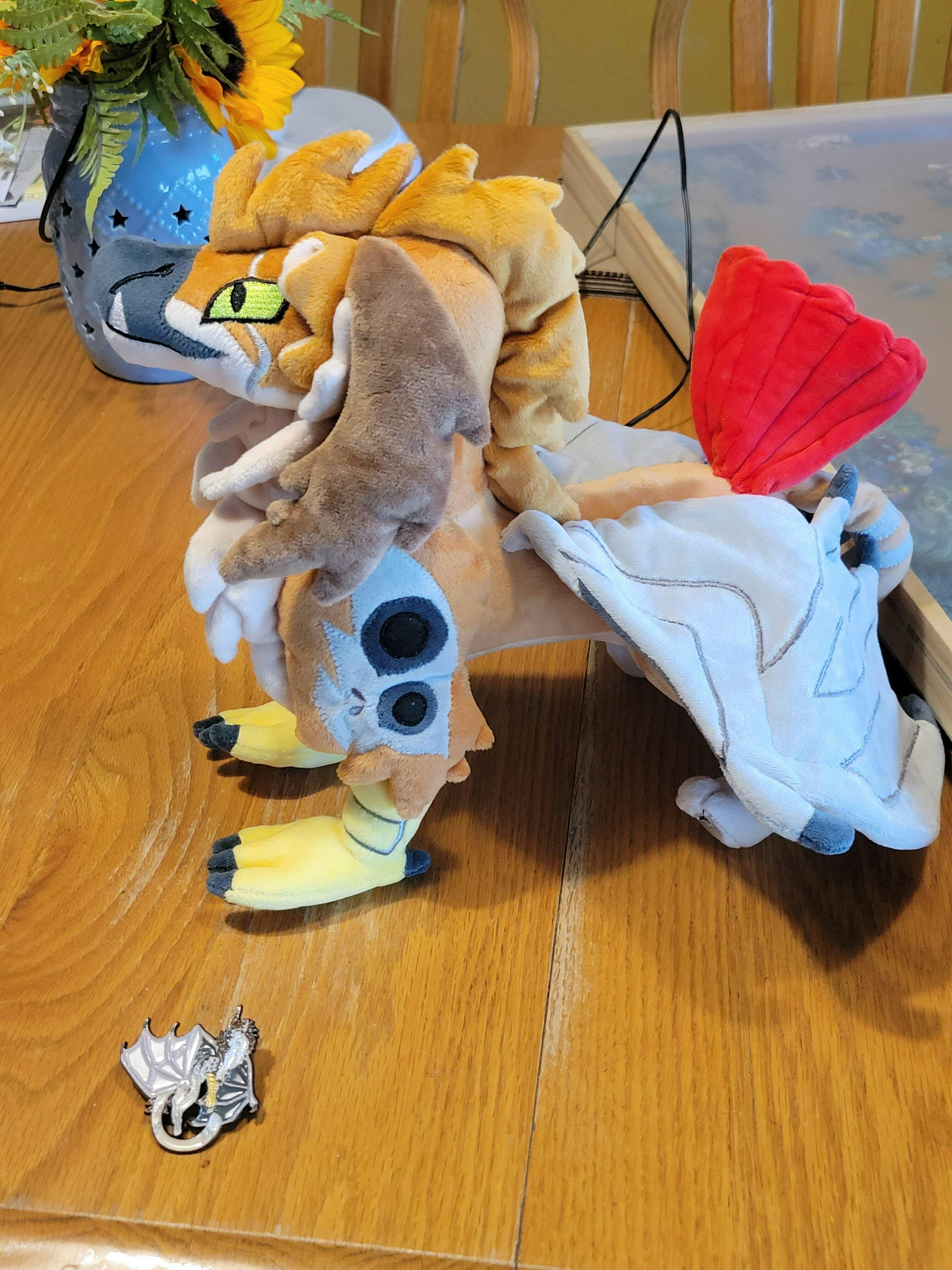 Everyone’s sweet loving boy! How can an experiment gone wrong look so cute and cuddly? For those that are big fans of this boy, you’ll see that he is loaded with intricate details! From the embroidery for his arm ports to the scars on his tail and over his eye, you can see he is meticulously designed! He’s ready for you to take him home!